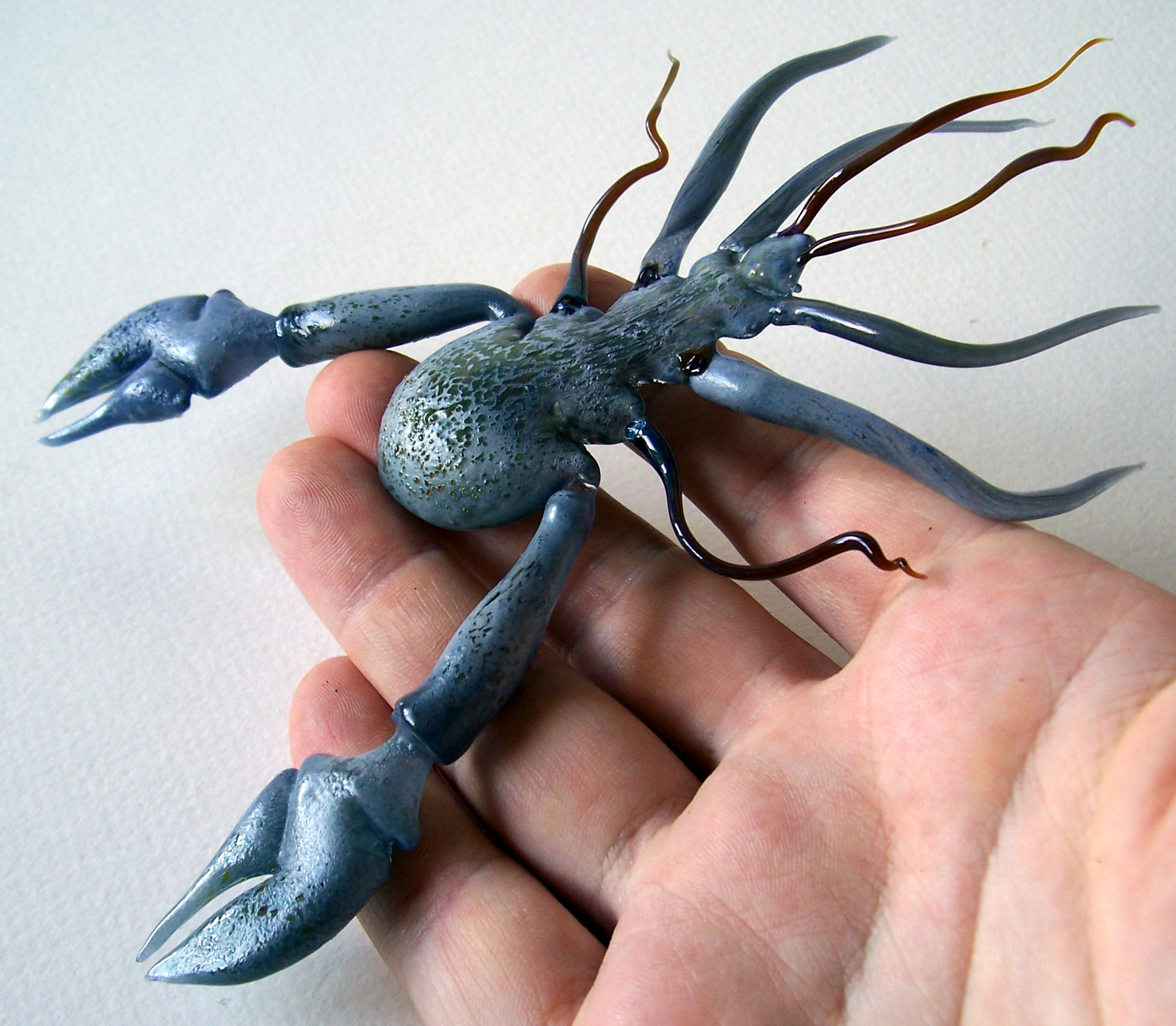 With lampworking my only accomplice is the flame, a super-hot mix of propane & oxygen that I direct just where I need to change the glass. There is no need to explain, to convince others of the worth of my ideas before I start, or stick to a preplanned schedule; its just me, the glass, and what’s in my head – however crazy that might be. It is direct. I can change plans at an instant, or remake the same part over and over until its as it looks in my mind.”