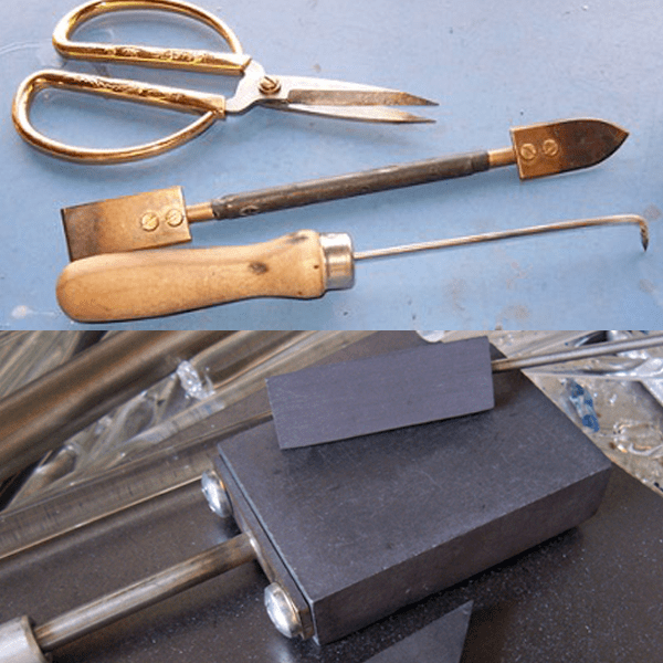 My tools look quite basic, many are often made of tungstan or graphite that can withstand the intense heat of the flame, & are used to poke, prod, & generally move around the glass.